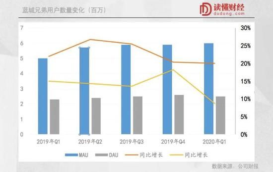过去几个季度,蓝城兄弟用户增长中规中矩,近5个季度MAU增速维持在20%左右。要知道,相比于潜在至少千万级的目标用户群体,公司当下MAU不过几百万。这样的增速显然不能让投资人满意。