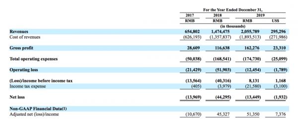财务数据方面,2017年至2019年,趣活的净收入分别为6.55亿元、14.75亿元和20.56亿元(人民币,下同);净亏损则分别约为1396万元、4429万元和1344万元。