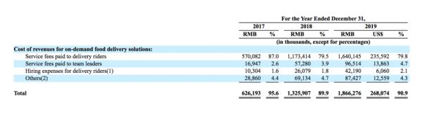 而之所以毛利率较低主要归咎于人力成本偏高。譬如趣活2019年在核心业务——食品即时配送业务中支付给骑手和管理人员的费用占比分别为79.8%和4.7%,显然这将大大压缩毛利水平。