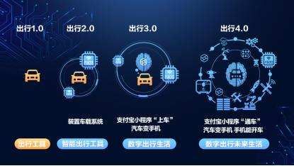 在支付宝规划的数字出行中,用户通过手机支付宝小程序预订了一个餐厅的晚餐,当用户上车时,汽车就会为用户自动导航前往目的地,同时车载小程序就会主动预约排号;如果遇到交通拥堵,小程序还会根据到达时间主动提醒用户是否需要把订座时间延后半小时;到达餐厅附近,系统会自动唤醒小程序,为用户推荐就近的停车场;下车后,车载小程序会无缝连接到手机端,用户可以在手机小程序上查看餐厅的预约信息等。