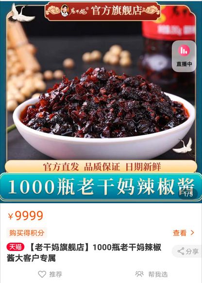老干妈上架“大客户专属”1000瓶辣椒酱,售价9999元
