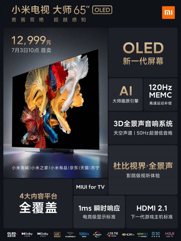此前的预热,已经把小米电视大师版这款新品的特性给曝光得差不多了,主打高画质与音质体验。作为旗舰电视,最重要的特性就是 OLED,这也是旗舰产品的入场券。