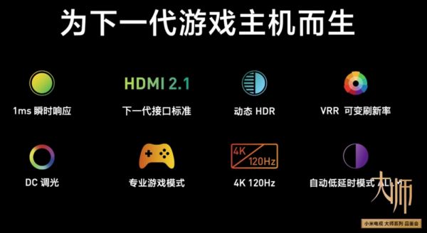 另外一个值得一谈的是接口,小米此次配备了一个 HDMI 2.1 接口,能更好地适配下一个世代的游戏主机,产品宣传中也特别提到了这款产品的游戏支持性,延迟在游戏模式可以做到 30ms 以下,同时 VRR 可变刷新率等也是下一个世代主机才有的特性。当然,距离新主机发布至少还有半年时间,这个接口是为未来买的保险。如果你压根不玩游戏,那么这个接口对你来说可有可无。
