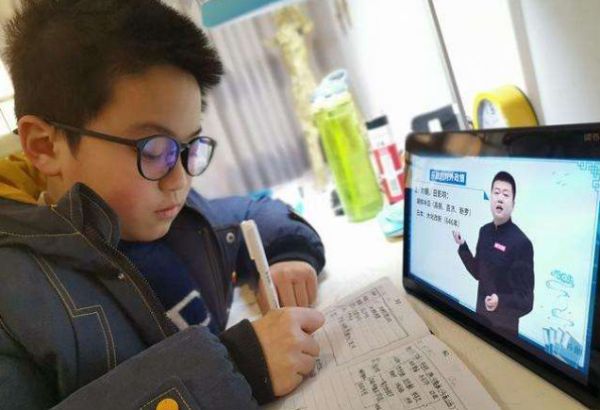 图注:学生在利用在线教育平台上网课