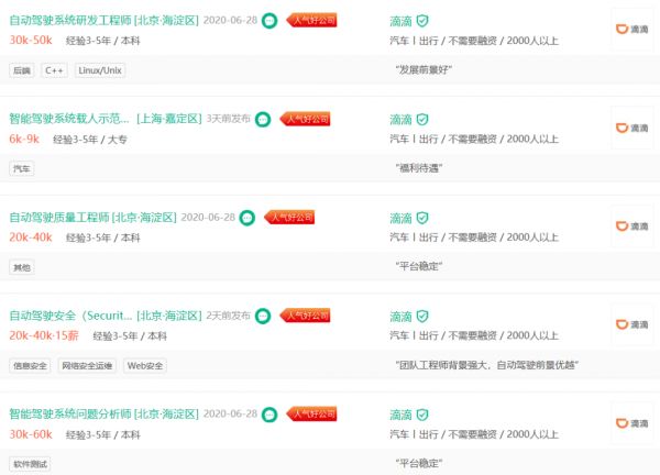 据一点财经了解,在招聘网站上,滴滴仍然在招聘大量自动驾驶方面的人才,包括自动驾驶系统研发工程师、自动驾驶智联工程师、自动驾驶内外饰工程师等。