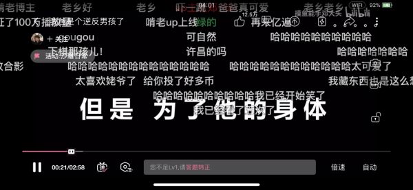 如图所示,弹幕会在视频底部以跑马灯的形式呈现。