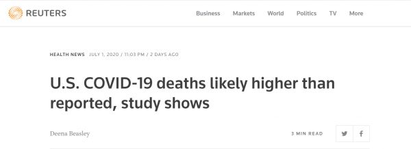 (原标题:路透社:研究显示,美国新冠肺炎实际死亡人数很可能高于官方统计)