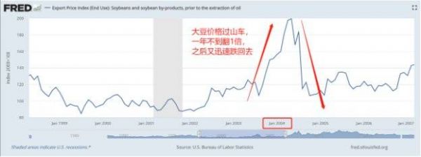 2004年大豆危机期间暴涨暴跌的大豆价格。来源:圣路易斯联储。