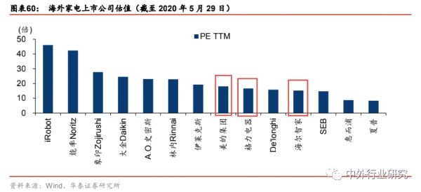 家电龙头个股有较稳定业绩表现,对标海外家电个股,家电龙头PE估值并不高。