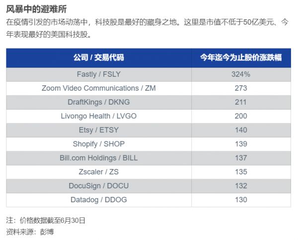 《巴伦》(barronschina)原创文章,未经许可,不得转载。英文版见2020年7月2日报道“Here Are the 10 Best-Performing Tech Stocks in the First Half. At Least 1 Has Gone Too Far.”。(本文内容仅供参考,投资建议不代表《巴伦》倾向;市场有风险,投资须谨慎。)