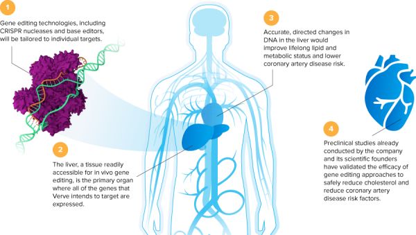 好消息是,一针治愈及预防心脏病的可能性,被一家公司叫做Verve Therapeutics的美国初创生物技术公司验证了。Verve寄望于用基因编辑的方法,“一劳永逸”地对付心脏病。