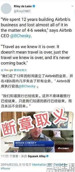 如果单从这些言语来看,无论是在英文还是中文语境下,切斯基的潜意思自然是Airbnb花费了12年建设的业务已经开始崩塌,Airbnb已经是一只脚已经站在悬崖边上。在如今众多行业都处于风雨飘摇之际,如果外界认为执掌Airbnb这艘大船的船长都如此悲观,后果无疑是不堪设想。