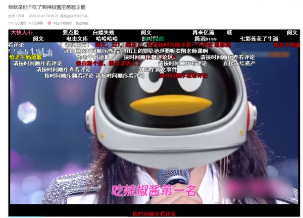 先举个小例子,前两天腾讯和老干妈的“囧事”发生后,腾讯官方当天就在B站发布了名为《我就是那个吃了假辣椒酱的憨憨企鹅》的视频,并且瞬间火爆。视频一度冲到了全站排行的前三名,播放量超700万,有6.5万条弹幕。至少就这一波宣传的效果,都得值上个好几百万。