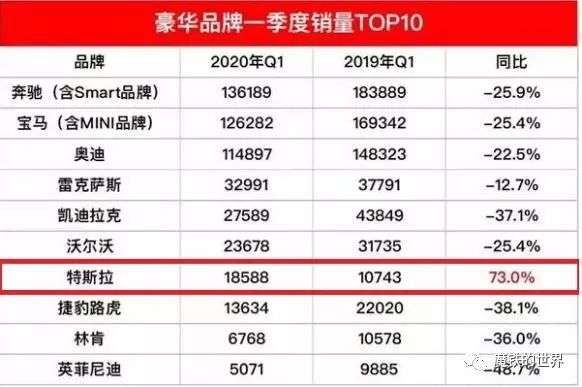 根据中汽协发布的数据,受疫情影响,2020年第一季度国内汽车销量为367.2万辆,同比下降42.4%。哪怕是号称“避风港”的豪华车市场,也出现全线下滑的情况,但特斯拉是个例外。2020年一季度,特斯拉在华销量累计销量达到1.86万辆台,同比暴增73%,超越了捷豹路虎、林肯和英菲尼迪。