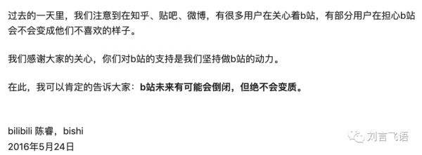 2016 年 B 站的几部新番剧集中,出现了贴片广告,陈睿不得已在知乎回应:
