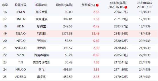 截至今日,特斯拉市值已经达到2543.94亿美元,连续“超车”2053亿美元的美国银行、2067亿美元的迪士尼、2068亿美元PayPal、2172亿美元的奈飞、2187亿美元的、2286亿美元的、2420亿美元的英伟达和2521亿美元的英特尔,位列美股市值第19。