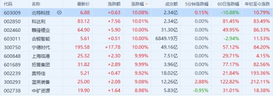 叠加牛市氛围,今日A股市场中以赣锋锂业、宁德时代为首的特斯拉概念股集体大涨,8股涨停,19只个股涨幅超过5%;港股市场上,雅迪控股涨幅飙到了21.85%,赣锋锂业也涨了12.99%。