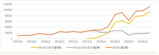 2019年第三季度,特斯拉的季交付量已经超过10万辆,Q4达到11.2万辆,受疫情影响,今年一季度特斯拉的交付量下滑至8.8万辆。