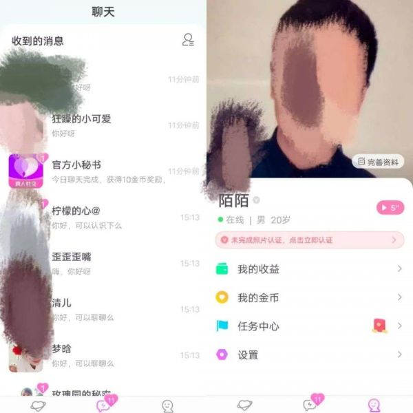 用户的个人中心里,显示的是用户的基本资料,用户可以再里面进行资料的完善,完善的信息包括但不限于年龄、收入以及职业等。除此外,用户还可以在个人中心内做金币任务,金币可以用来给对方送虚拟礼物。
