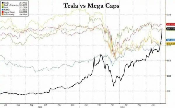 从市值看,特斯拉在不到一个月前先是超越了汽车业老大哥丰田,最近几天又在科技业奋勇争先,经昨日一役,战胜了英特尔、英伟达、Verizon和AT&T这些成立多年的科技巨头,也高于迪斯尼和美国银行。