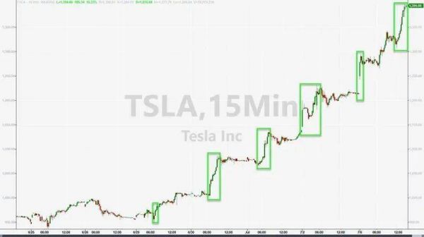 就在周一,特斯拉开盘不久就突破了1300美元大关,收盘创出连续第四日新高,盘后股价进一步大涨至1400美元。