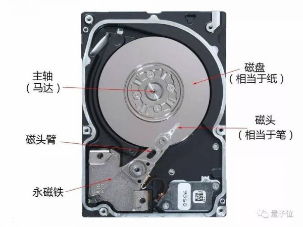 硬盘工作的时候,主轴高速运转带动盘片,上面的磁头会感应盘片上的磁场变化,通过改变磁场,来写入数据。