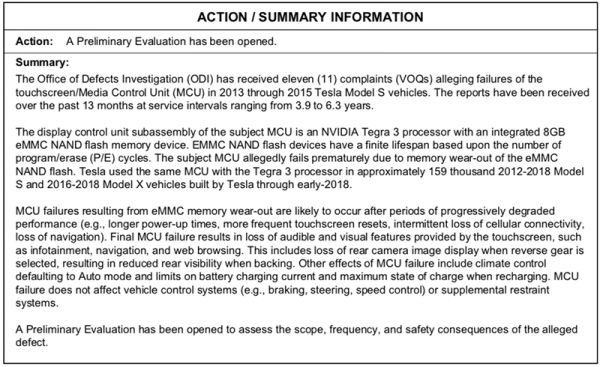 现在,NHTSA针对特斯拉MCU的初步评估已经开始。