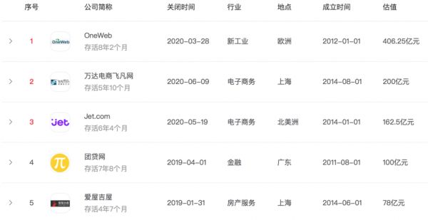 根据IT桔子新经济公司死亡数据库显示,2020年上半年,死亡的独角兽公司,前五家中就有3家中国公司。