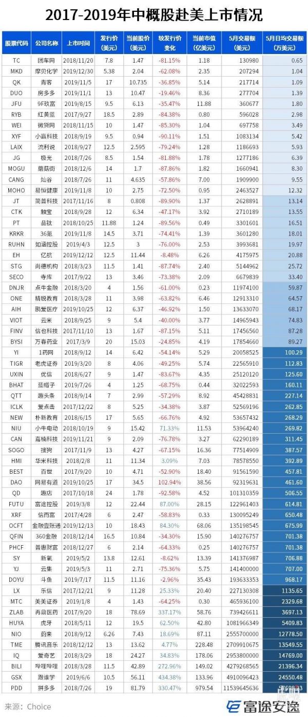 如上图所示,据Choice统计的59家赴美的中概股上市情况显示,仅有13家表现良好,其他46家公司,在统计当日,破发惨重,很多公司甚至比发行价腰斩还不止。