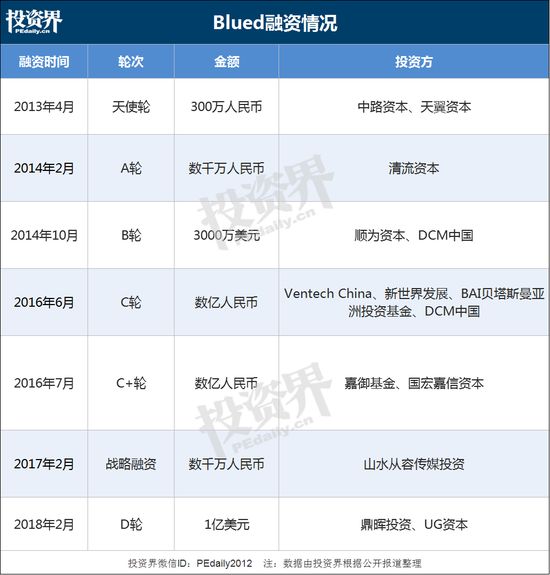 2014年,Blued拿到顺为资本和DCM的3000万美元B轮投资。顺为资本创始合伙人、CEO许达来透露,2014 年初,顺为团队便非常看好这个创业团队,并领投了 B 轮融资,“非常荣幸能够陪伴这支有初心、有梦想、有行动力的团队从初创直至 IPO”。