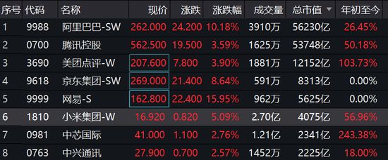 涨势最凶的除了券商等大金融板块,就是以阿里、腾讯为主的科技股。