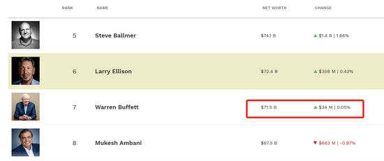 随着科技巨头财富增值,即使如股神巴菲特个人财富排名也大幅下滑,最新财富为715亿美元。最近接连被前微软公司首席执行官史蒂夫·鲍尔默、谷歌联合创始人拉里·佩奇和谢尔盖·布林超越。不过,据彭博数据,巴菲特个人身家只有686亿美元,使他在彭博亿万富豪指数排名第八位,是2012年开始发布该指数以来的最低排名。(文/金石)