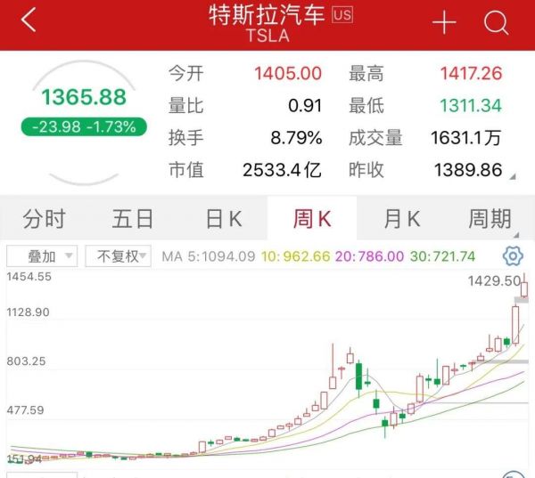 特斯拉股价