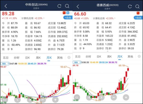 汽车界的需求也反应到了资本市场上。近期在A股,智能座舱也成为一个热门概念,包括中科创达(300496)、德赛西威(002920)等国内相关企业的股票也出现大幅度上涨。