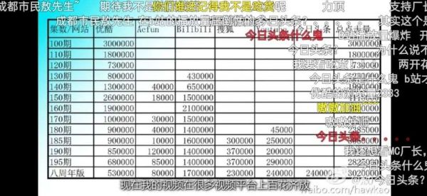 与此同时,他在流量和内容思维上也是超前的,他是最早的一批同时在优酷、贴吧、土豆、B站、Youtube、今日头条上同时更新自己视频,多平台策略的创作者;同时每当内容遇到瓶颈,就积极转型,尝试新的内容类型,并不断找准用户的口味及喜好,让播放量稳步提升。