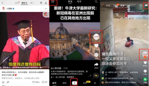 左到右依次为:视频号、抖音、快手