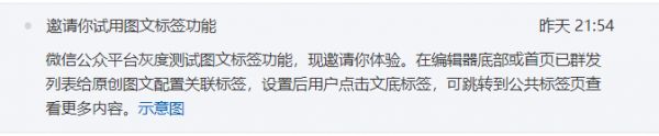 6月7日,我的公号后台收到一条官方消息,邀请试用图文标签功能。