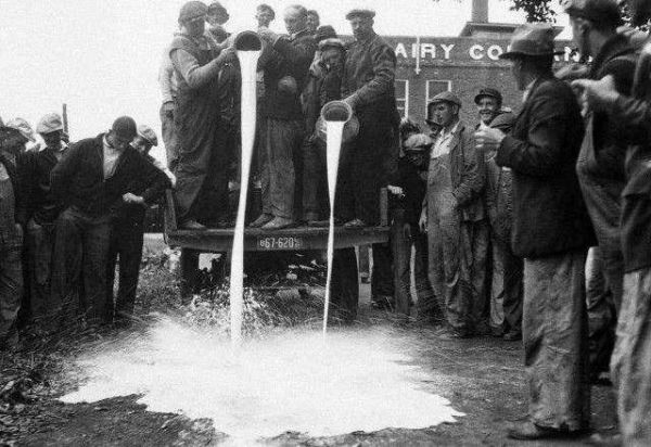 如果要制成储运方便的奶酪、黄油等,又需要额外的成本。此外,他们还面临着无法偿还贷款而失去农场的危机。由此,1933年,纽约州一牛奶协会组织的奶农进行了集体罢工,抗议奶价太低而倾倒了6000加仑的牛奶。