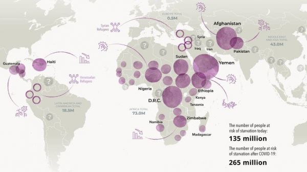 联合国世界粮食计划署(WFP)与多个合作伙伴发布《全球粮食危机报告》(Global Report on Food crisis)指出,疫情可能使遭受严重饥饿的人口数量增加近一倍,到 2020 年底突破 2.5 亿——世界正面临50年来最严重的粮食危机。