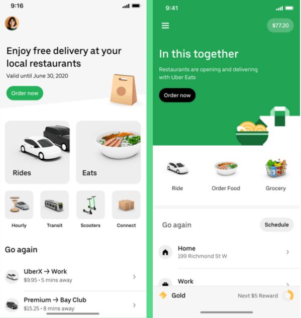 通过扩展其平台和重复利用核心模式,Uber目标是从现有和新客户中找到新的收入来源以及更快的盈利途径。在Uber,这并不是一个全新创意,之前就有过 “Uber Everything”的提法。但不同之处在于疫情给业务转型带来的紧迫感,配送服务行业的迅速成熟,以及Uber面临的巨大压力,其需要在竞争对手面前站稳脚跟,并满足新的市场需求。这种转变直接体现在Uber推出的新版应用上。