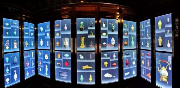 另外一个数字展馆为「数字多宝阁」,它由 9 列 2 排共 18 块高清屏幕组成,精选 12 大类、160 多件故宫典藏器物,利用高精度三维模型,构建一个虚拟的「多宝阁」。