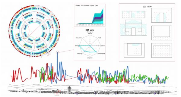 团队与敦煌研究院合作,对 11 个洞窟、47 个监测点,进行了持续性的壁画和彩塑文物本体年度监测。