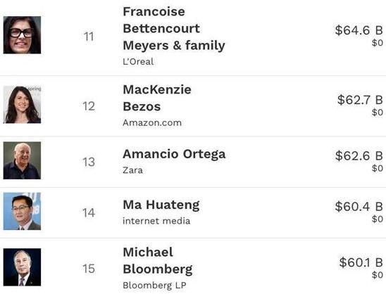 值得注意的是,随着亚马逊后期业绩释放利好,刺激股价持续攀升,麦肯齐有望冲击全球女首富的王座,夺走目前欧莱雅继承人弗朗索瓦·贝当古·梅耶斯的荣光(身家646亿美元)。