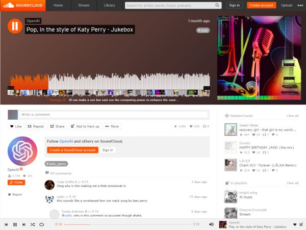 Jukebox依赖曲库数据集来加工产出乐曲,意味着音乐界的版权纷争。知名播客主播Cherie Hu在Twitter上指出,AI版点唱机可能带来版权灾难。