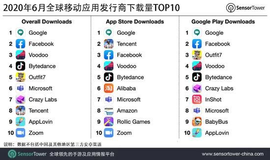 9月全球移动应用发行商下载榜:谷歌位列榜首字节跳动排名第五