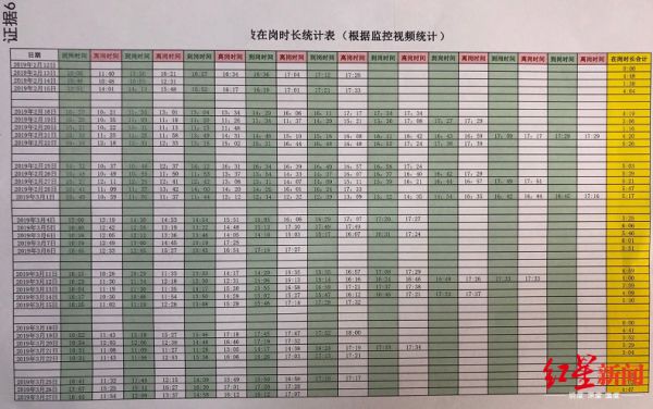 一份腾讯公司统计的闫先生2019年2月12日至2019年3月27日在岗时间表显示,闫先生每天在岗时间均不足8小时。对此,闫先生表示,在岗时长统计表是基于监控视频统计,只要自己离开座位就算脱岗,腾讯将因开会、培训、请假、工作中的正常走动等不在卡位的情形强行归结为缺勤,理由不能让人信服。