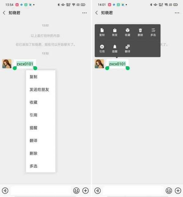 左为 7.0.16 for Android 正式版,右为微信 7.0.17 for Android 内测版