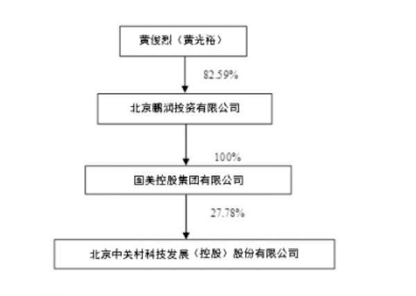 据中关村2018年三季度报显示,中关村第一大股东为国美控股集团有限公司,持股比例为27.78%。天眼查信息显示,黄光裕通过北京鹏润投资有限公司,间接持有国美控股集团82.59%股份。简单换算,中关村控股股东及实际控制人为黄光裕,其间接拥有中关村22.94%的股权。