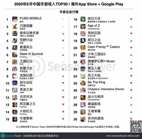 根据Sensor Tower公布了6月份中国手游产品在海外市场的收入排行榜,PUBG手游和使命召唤手游位列第一和第三,其中前者6月海外收入近7900万美元,自2018年4月开启应用内购至今,游戏在海外双渠道累计吸金14.8亿元。