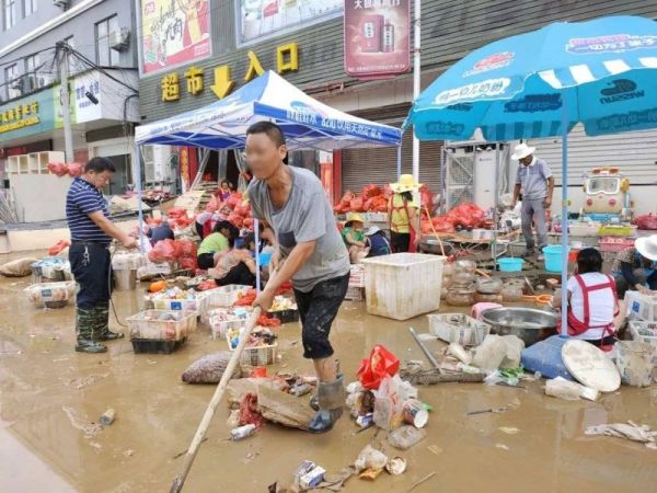 有一些货物因为有包装,从污水中抢救回来后,还可以清洗干净再用。彻底没法用的是冷库里的冻品。洪水来临之际,镇上开始停电,一停就是两天。冷库里的水饺、汤圆,甜点等速冻食品全部加速腐坏。据她估算,冷库中的货物价值大约二三十万,只能全部扔掉。